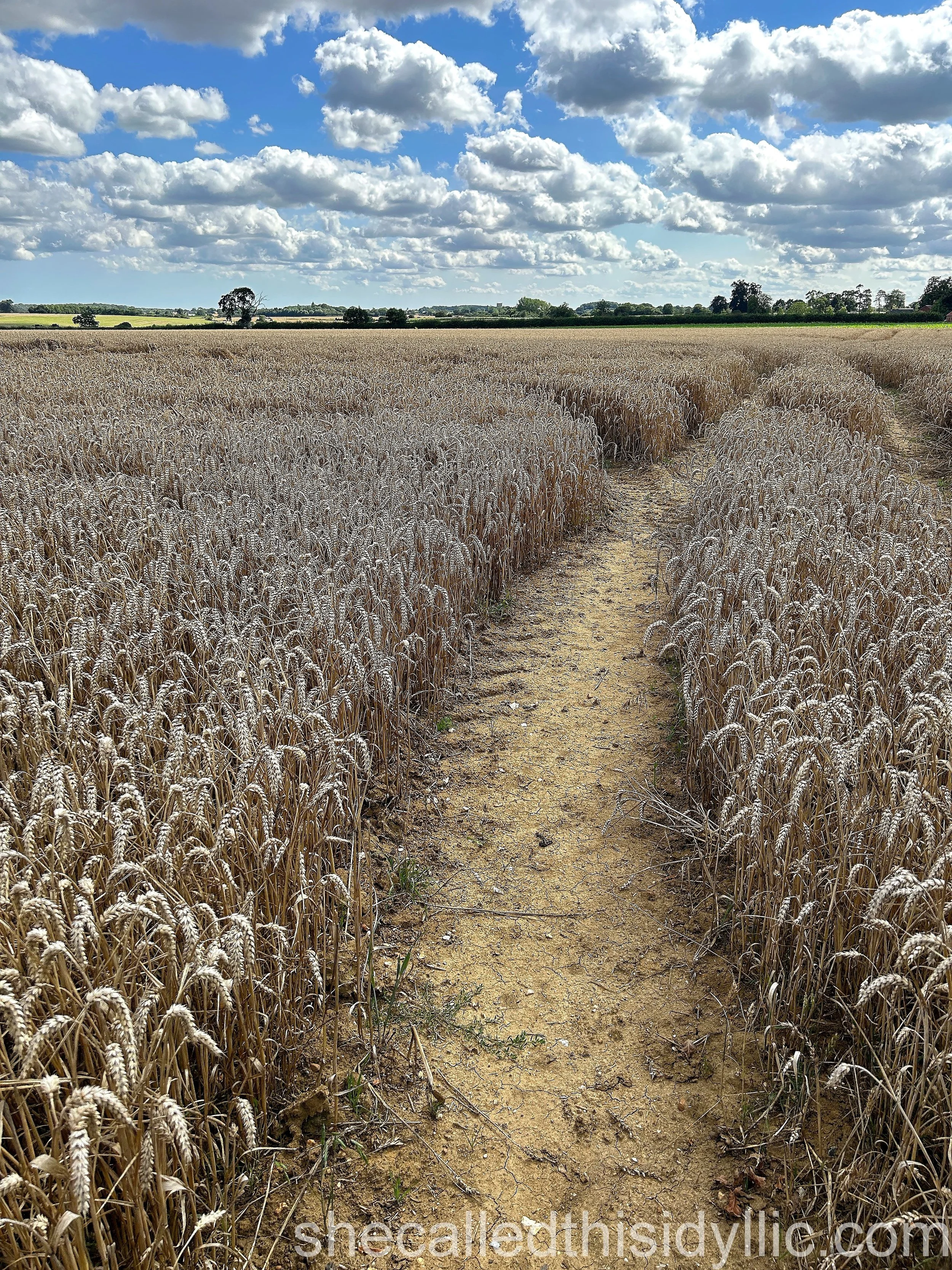 Walking along quiet lanes, tractors and farm machinery working in the summer-dry fields as drifting clouds of dust take to the air, little storms of rural activity and a visible soundtrack to our amble.